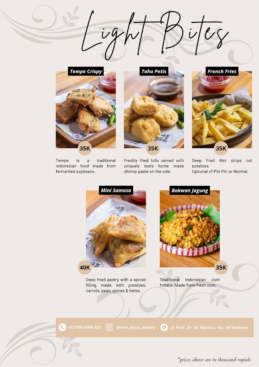Welcome to One Place Eatery, a vibrant culinary spot located in Ketewel, Bali, offering a delightful taste of traditional Indonesian cuisine. This family-friendly eatery not only promises delicious food but also provides a fantastic atmosphere for families with kids. Indulge in mouthwatering dishes like iga penyet and tahu telor, hailed by patrons for their exceptional flavors and affordable prices.
